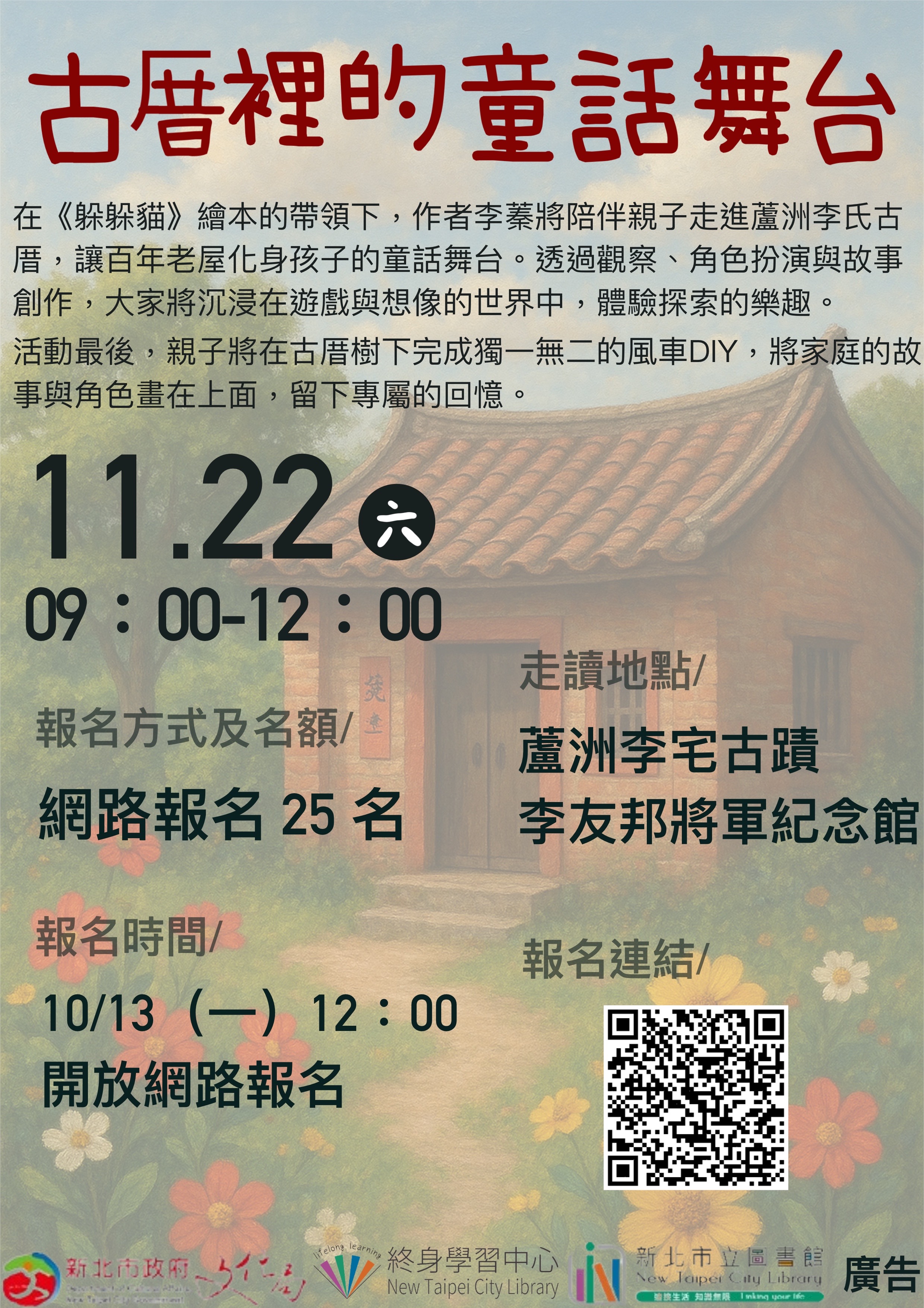 • 【蘆洲永平分館】114.11.22 生態走讀 :「古厝裡的童話舞台」